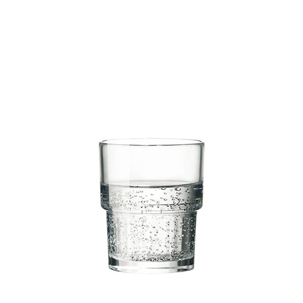 Impilabile. Realizzato in resistente vetro temperato. Capacità: 21 cl. Dimensioni: max Ø 86,3 x H 71 mm.