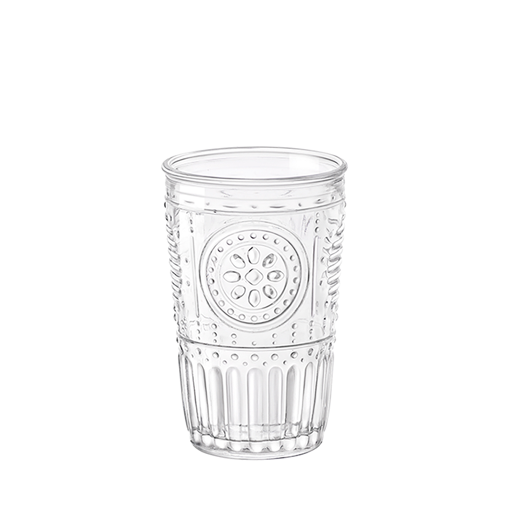 Uno stile ricercato e prezioso, che rimanda a sontuose atmosfere barocche. Capacità: 34 cl. Dimensioni: max Ø 79 x H 123 mm.