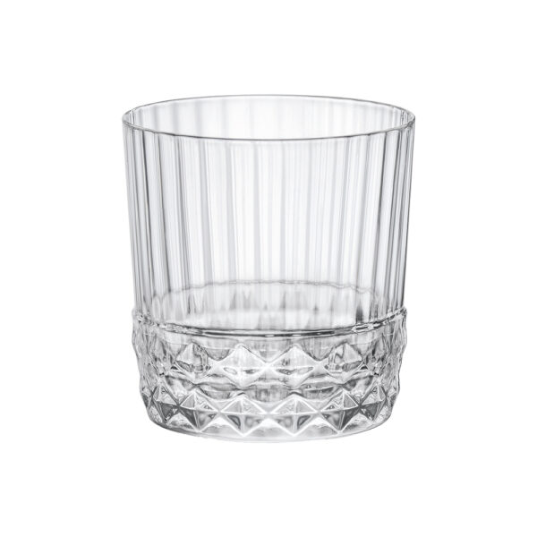 La linea America si ispira ai ruggenti anni ’20. Il design richiama il glamour dei locali americani in voga ai tempi e le note della musica jazz. Uno stile vintage elegante e originale, esaltato da numerose sfaccettature che creano preziosi effetti di luce, valorizzando i colori dei cocktail e delle bevande servite.