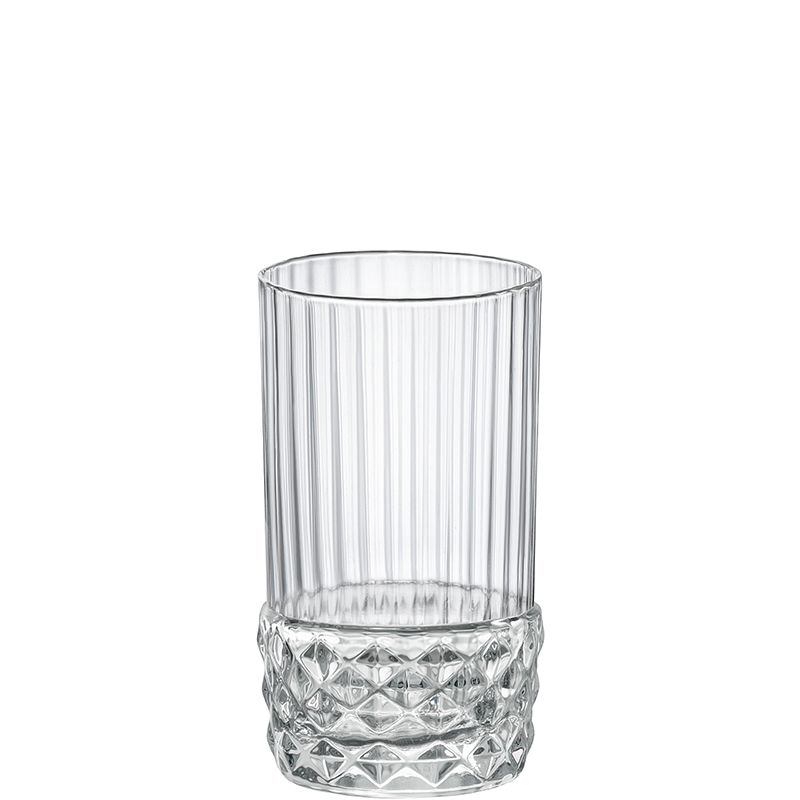 La linea America si ispira ai ruggenti anni ’20. Il design richiama il glamour dei locali americani in voga ai tempi e le note della musica jazz. Uno stile vintage elegante e originale, esaltato da numerose sfaccettature che creano preziosi effetti di luce, valorizzando i colori dei cocktail e delle bevande servite.