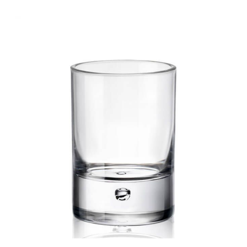 Questa linea si caratterizza per le linee sobrie, pulite e raffinate. La base spessa è caratterizzata dalla presenza di una goccia che crea riflessi insoliti. Lo shot è adatto sia a liquori che a cocktail stratificati, che giocano sulle diverse consistenze dei liquidi. Capacità: 5 cl. Dimensioni: max Ø 47 x H 70 mm. Lavabile in lavastoviglie. Made in Italy. In vetro trasparente.