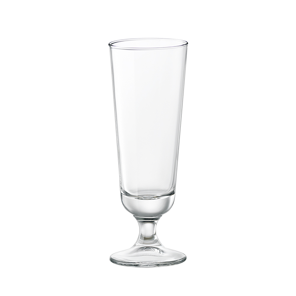 Particolare calice long drink in vetro con gambo basso, robusto ed elegante, ottimo anche per servire birra. Capacità: 33 cl. Dimensioni: max Ø 71 x H 200 mm.