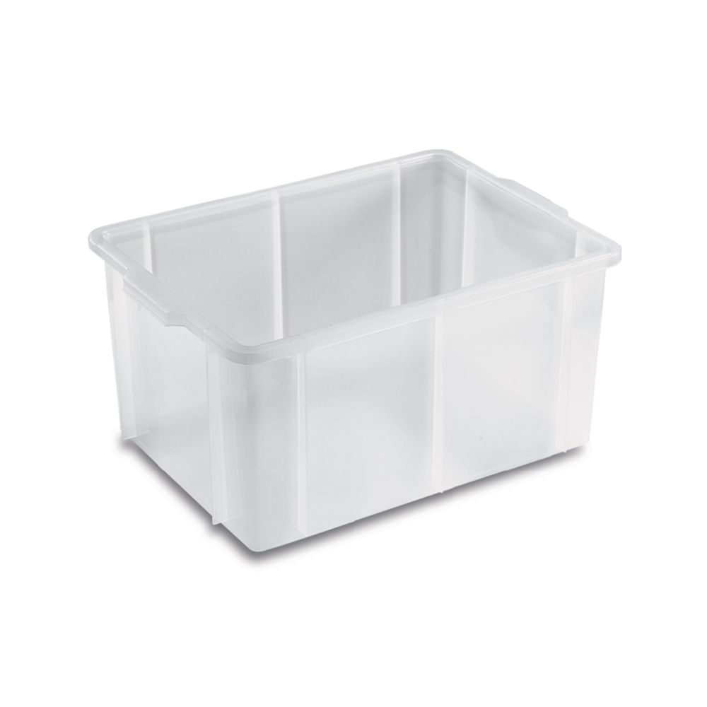 Contenitore rettangolare sovrapponibile Diamant senza coperchio. Colore: Bianco. Adatto al contatto alimentare, MOCA. Adatto al congelatore. Idoneo per forno a microonde. Lavabile in lavastoviglie. Materiale: Polipropilene. Made in Italy.