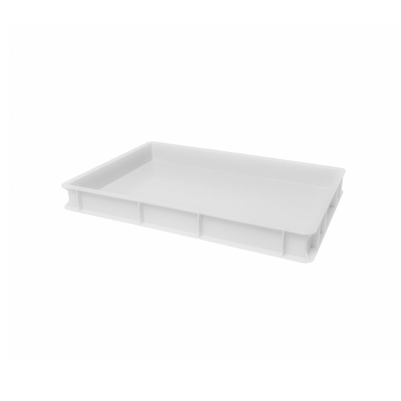 In PE (Polietilene) 100%, idoneo al contatto con gli alimenti. Non assorbe l’umidità ed è facile da pulire. Resistente a temperature da -40°C a +80°C e fino a +120°C durante il lavaggio. Resistente e leggero, è impilabile per impedire l’ingresso di polvere e impurità. Fondo chiuso e costolato. Pareti chiuse. Ideale per lo stoccaggio.