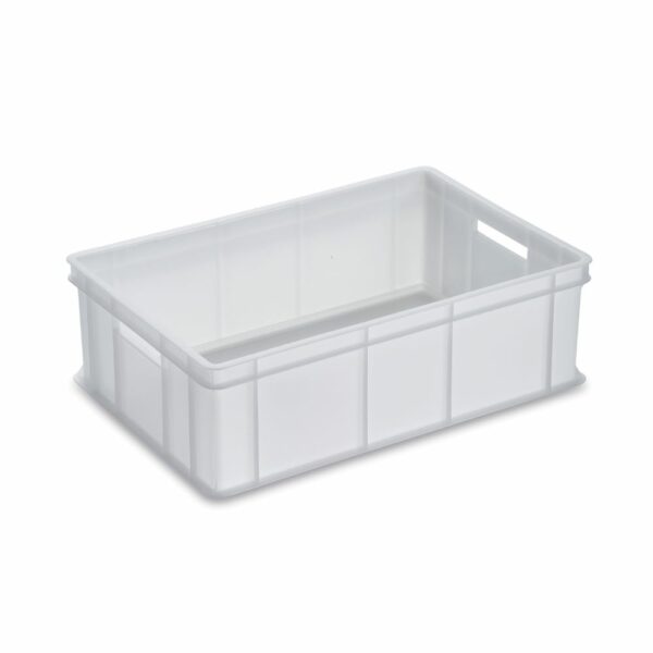 Cassetta “Service” piena, sovrapponibile senza coperchio, prodotta con polimeri certificati e di ottima qualità per il contatto alimentare (Moca). Professionale, resistente e di ottima fattura, ideale per la “Fermalievitazione”. Adatta per congelatore. Idonea per forno microonde. Lavabile in lavastoviglie. Dimensioni: 60 x 40 x H 19 cm. Capacità: 45 lt.