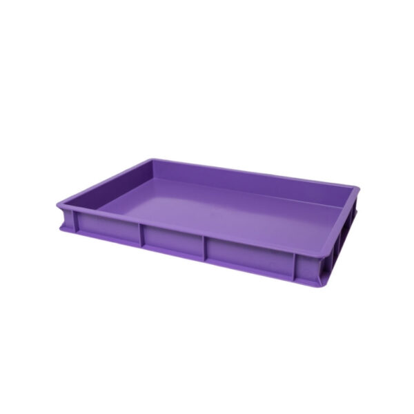 In PE (Polietilene) 100%, idoneo al contatto con gli alimenti. Non assorbe l’umidità ed è facile da pulire. Resistente a temperature da -40°C a +80°C e fino a +120°C durante il lavaggio. Resistente e leggero, è impilabile per impedire l’ingresso di polvere e impurità. Fondo chiuso e costolato. Pareti chiuse. Ideale per lo stoccaggio.