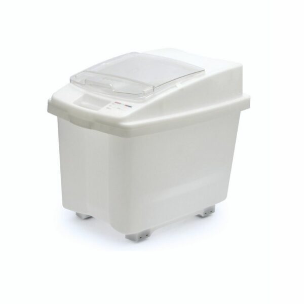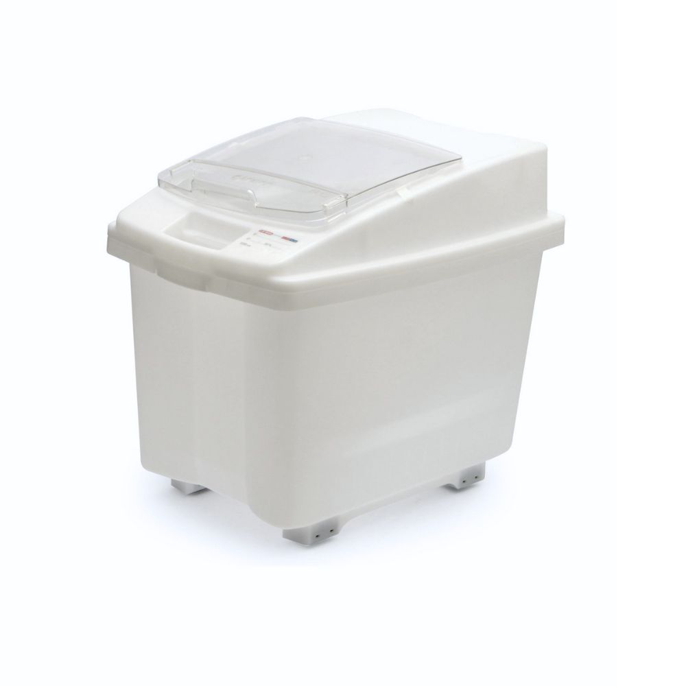 Contenitore ideale per la conservazione e lo stoccaggio a secco degli alimenti. Materiale: Polietilene ad alta densità (HDPE). Senza BPA. Resiste a temperature da -40°C a +90°C. Con ruote e coperchio.