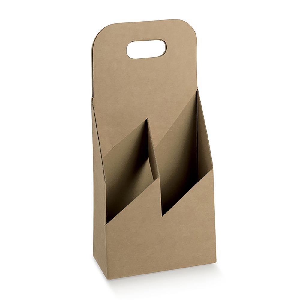 Cestello in cartone accoppiato per contenere 2 o 4 bottiglie, perfetto anche come food delivery box per fritti e bibite in lattina, con maniglia, pratico, resistente e compatto. Colore: avana.