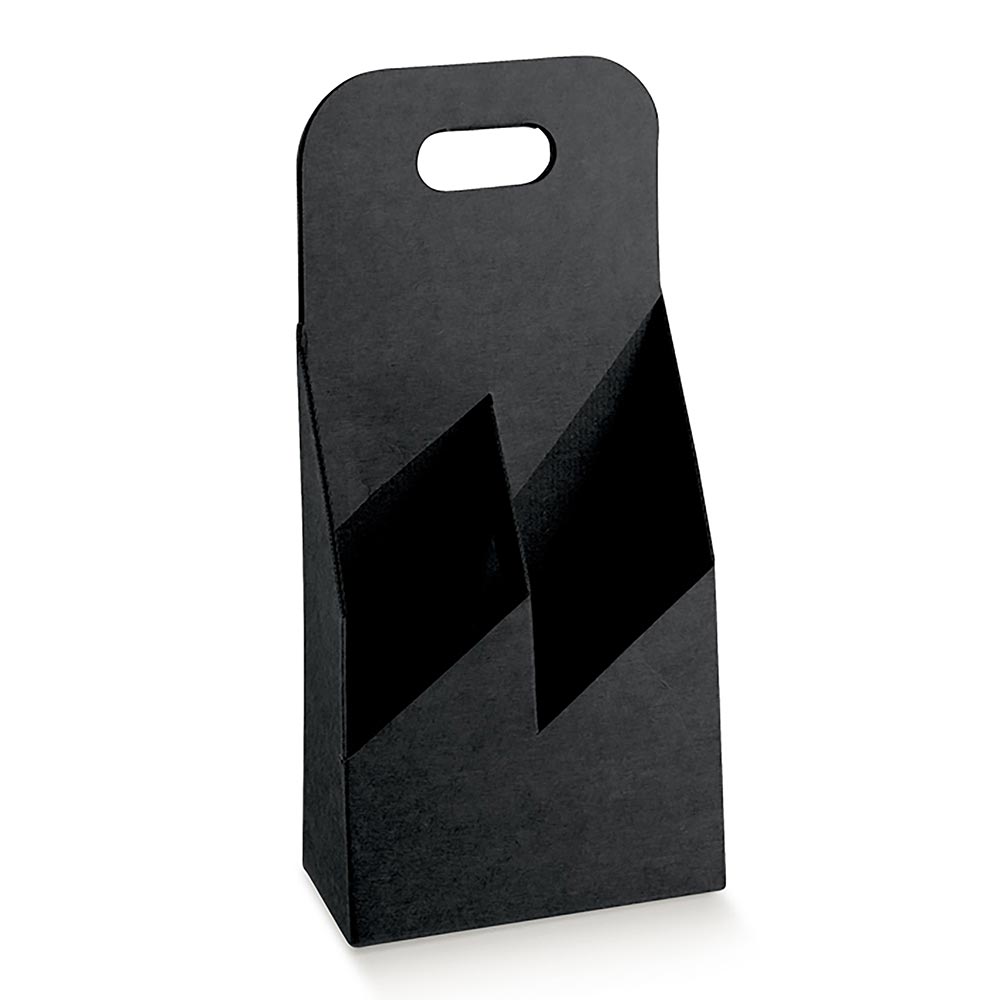 Cestello in cartone accoppiato per contenere 2 o 4 bottiglie, perfetto anche come food delivery box per fritti e bibite in lattina, con maniglia, pratico, resistente e compatto. Colore: nero.