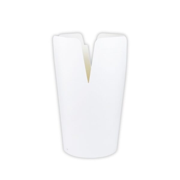 Confezione da 160 pz. Materiale: carta per alimenti. Capacità: 160 ml. Diametro inferiore: 89 mm. Dimensioni superiori: 81 x 81 mm. Altezza: 100 mm (chiuso), 159 mm (aperto). Il sistema di apertura e di chiusura non prevede alcun coperchio: basta alzare e abbassare le alette superiori con un semplice gesto, nella massima praticità.