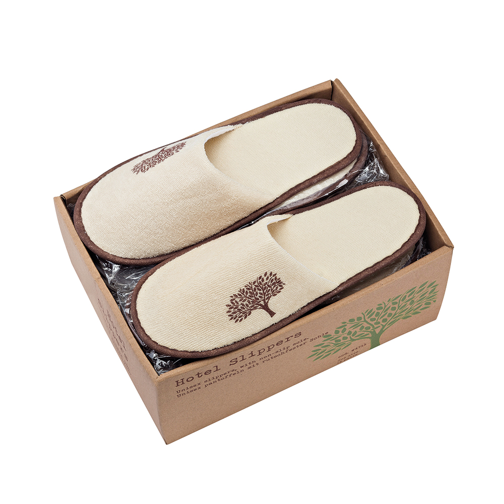 Confezione da 12 paia di ciabatte chiuse in spugna, suola in gomma, taglia unica. Colore: avana e marrone.