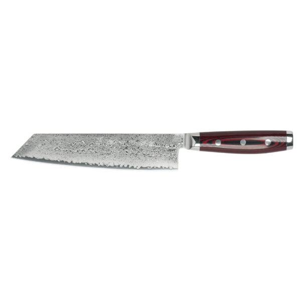 Coltello Kiritsuke con lama affilata a rasoio in acciaio inox sinterizzato giappnese, SG2 Micro Carboide, ricoperto da 161 strati d’acciaio inox a rigidità varibile. Dimensioni lama: 20 cm. Dimensioni totali: 34 cm.