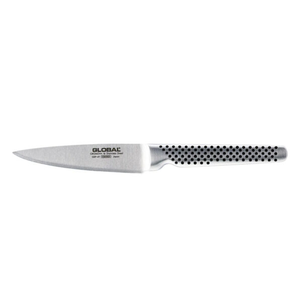 Coltello con lama forgiata in acciaio speciale Cromova 18 al molibdeno-vanadio, con grado di durezza 56-58 HRC (Scala Rockwell). Il manico รจ in acciaio inox pieno. La lama รจ affilata a mano per un’ottima tenuta del filo. La serie GSF รจ composta di spelucchini con lame di varie forme per sbucciare e mondare frutta e verdura e, in generale, per effettuare tutti quei piccoli lavoretti quotidiani indispensabili nelle preparazioni dei cibi.