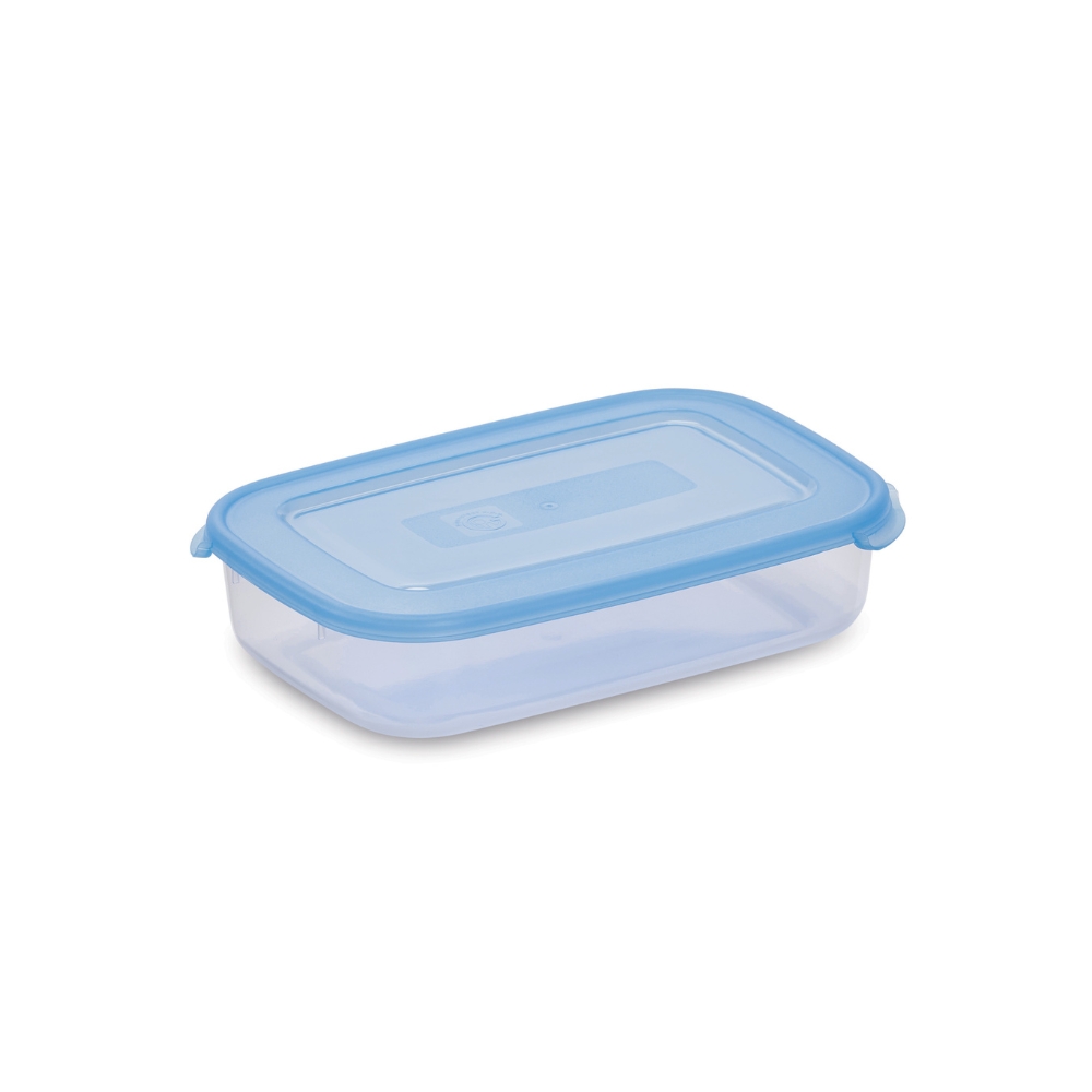 Contenitore in polipropilene (PP) idoneo al contatto alimentare, ermetico, utlile per conservare i vostri alimenti in cucina. Adatto per congelatore e forno a microonde (non il coperchio). Lavabile in lavastoviglie. Impilabile. Contenitore trasparente e coperchio blu.