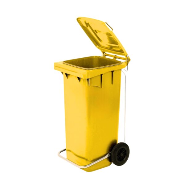 Contenitore per la raccolta differenziata e per l’igiene in ambienti professionali. In polietilene ad alta densità (HDPE), un materiale resisitente agli urti, ad agenti chimici e a sbazi di temperatura. Non assorbe liquidi, odori, umidità, grasso, oli, sali alcali. Facile da pulire. Idoneo al contatto alimentare. Con coperchio, ruote, pedale e reggisacco zincato. Colore: giallo.