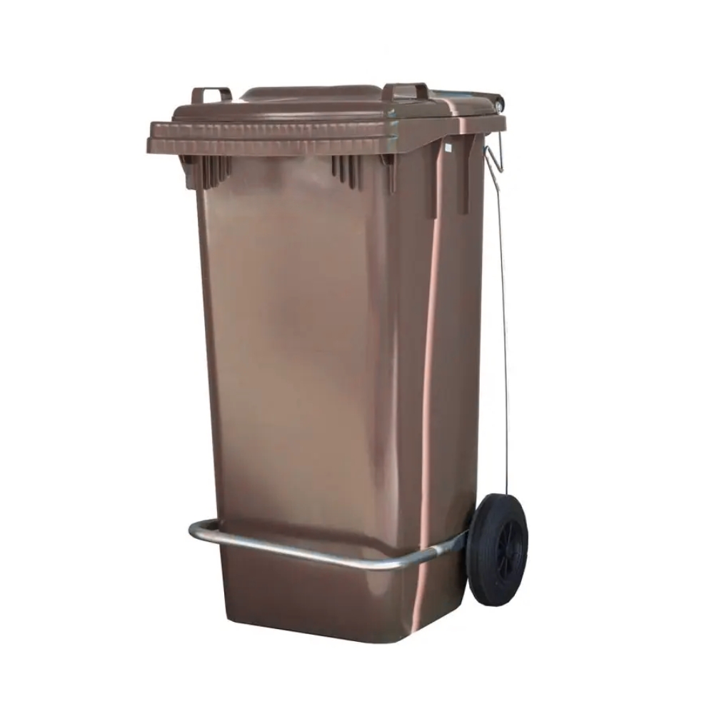 Contenitore per la raccolta differenziata e per l’igiene in ambienti professionali. In polietilene ad alta densità (HDPE), un materiale resisitente agli urti, ad agenti chimici e a sbazi di temperatura. Non assorbe liquidi, odori, umidità, grasso, oli, sali alcali. Facile da pulire. Idoneo al contatto alimentare. Con coperchio, ruote, pedale e reggisacco zincato. Colore: marrone.