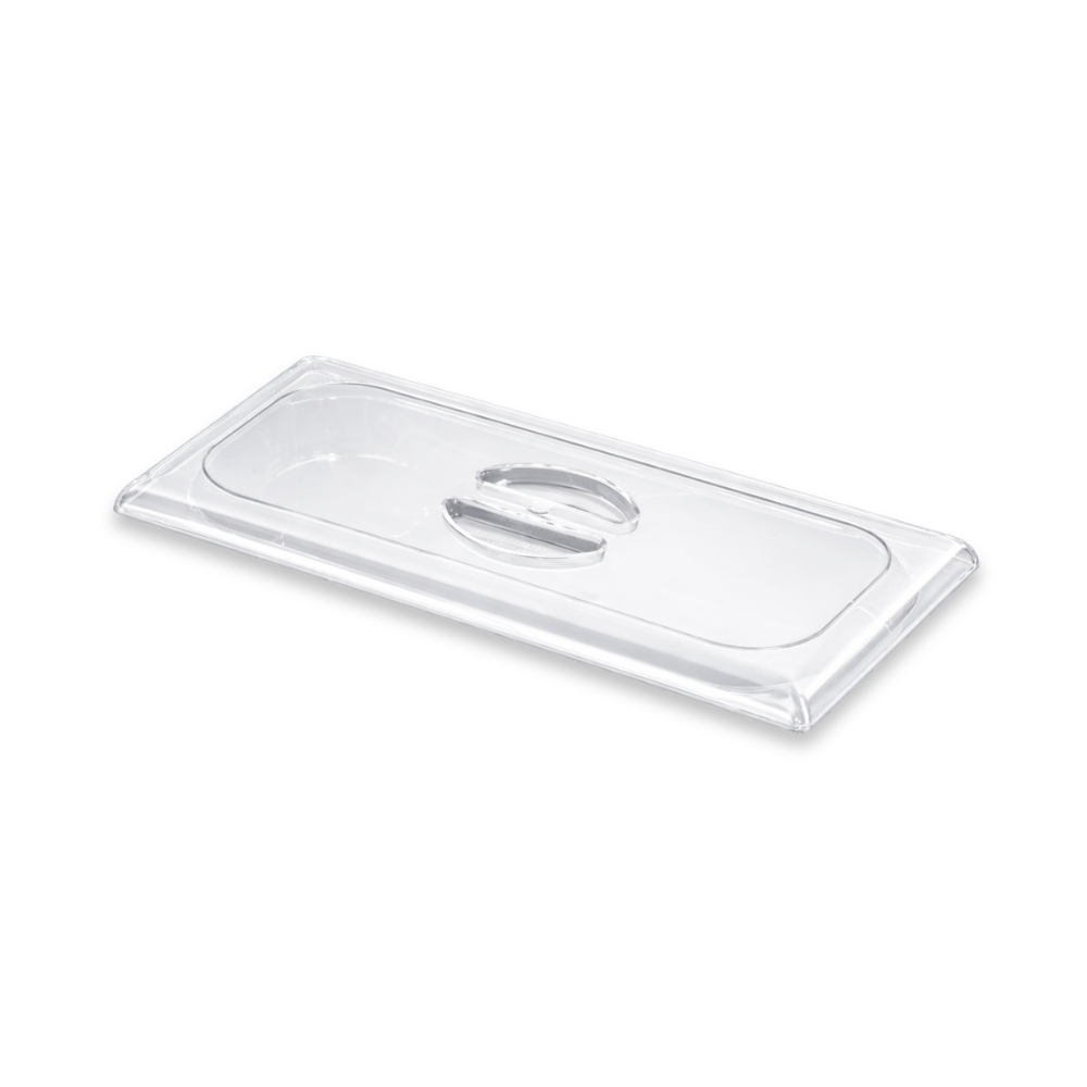 Coperchio da banco in policarbonato trasparente. Dimensioni: 360 x 165 mm.