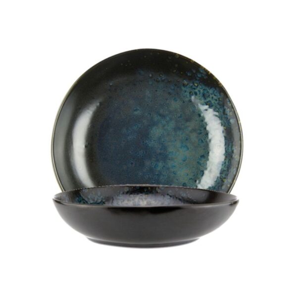 Coppa tonda dal colore nero reattivo blu della collezione Phobos di Le Coq Porcelaine. Dimensioni: Ø 28 x H 6,5 cm. Materiale: stoneware, materiale ceramico noto per la sua robustezza, per i bassissimi livelli di porosità e per l’elevata capacità di condurre il calore. I decori dei prodotti in Stoneware di Le Coq Porcelaine sono realizzati sottosmalto: questo li rende adatti al lavaggio in lavastoviglie, all’utilizzo nel microonde e resistenti ai graffi. Perfetta per servire insalate, antipasti, piatti principali e portate creative.