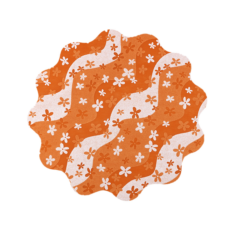 Materiale: simil tessuto. Bordo smerlato. Dimensioni: Ø 100 cm.