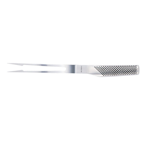 Forchettone utilizzato per girare arrosti e carni in genere. In acciaio speciale Cromova 18, al molibdeno-vanadio, con grado di durezza 56-58 HRC (Scala Rockewell). Lunghezza totale: 31 cm.