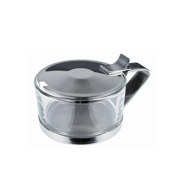 Formaggiera con contenitore in vetro. Dimensioni: Ø 9 cm. Capacità: 100 gr circa. Base e coperchio realizzati in acciaio inox 18/10. Il pratico coperchio incernierato agevola l’apertura e il piccolo manico permette una presa facile.