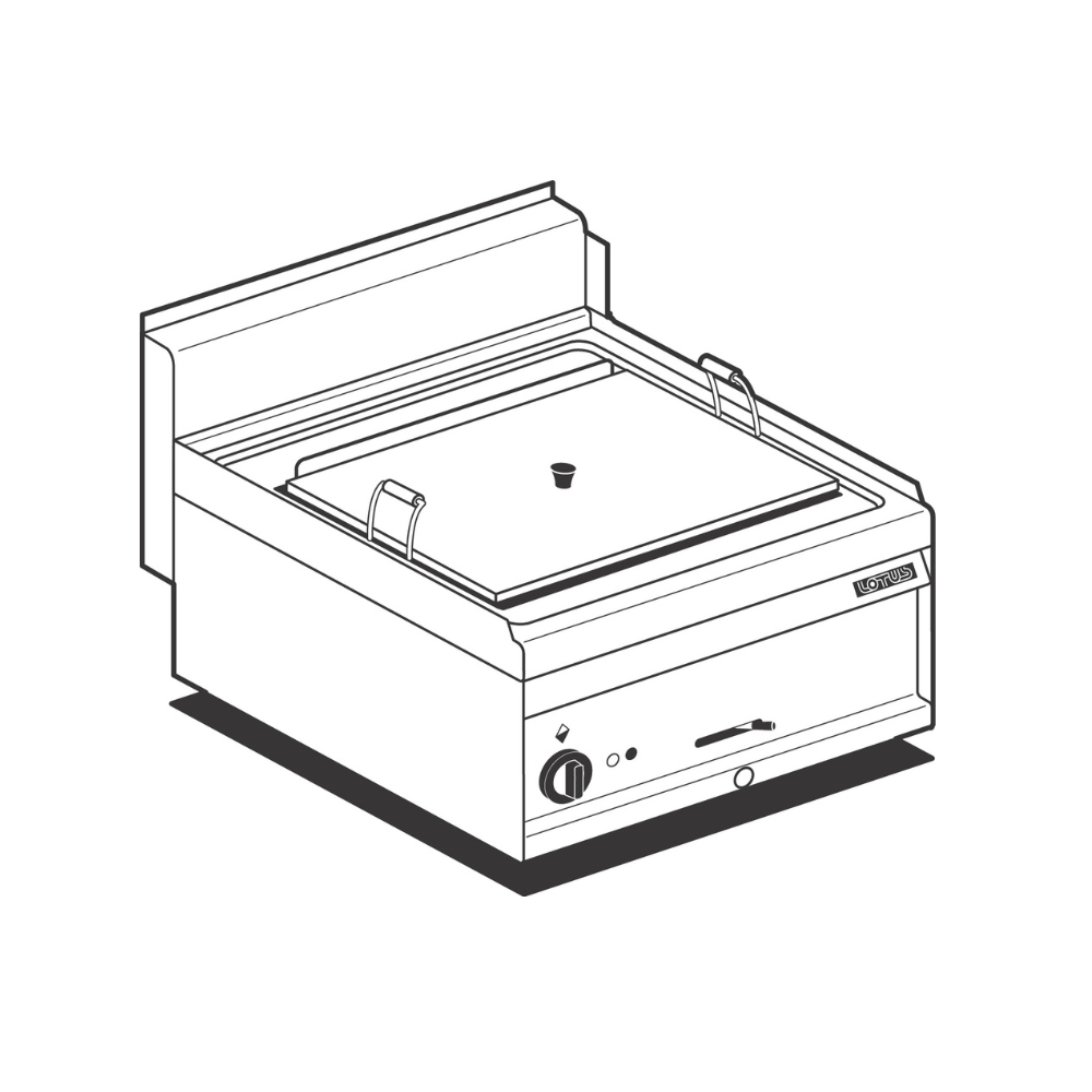 La friggitrice elettrica FP-6ET della linea 65 MagicProf è progettata per un utilizzo professionale intensivo, offrendo elevate prestazioni in una configurazione compatta top. Ideale per installazione su basi o piani di lavoro, consente di ottimizzare gli spazi operativi in cucina. La struttura in acciaio inox AISI 304 (CrNi 18/10) con finitura Scotch-Brite garantisce resistenza alla corrosione, igiene e lunga durata nel tempo. Il piano di lavoro con spessore di 1 mm e alzatina posteriore migliora la sicurezza e facilita la pulizia. La vasca da 23 litri è dotata di coperchio, cesto in rete d’acciaio cromato e filtro vasca con supporto cestino, assicurando elevati standard igienici. Il sistema con resistenza elettrica ad alta potenza garantisce un riscaldamento rapido ed uniforme. Dotata di doppio termostato (di lavoro e di sicurezza), assicura un controllo preciso della temperatura e un utilizzo sicuro. Lo scarico olio frontale facilita le operazioni di manutenzione, mentre la resistenza ruotabile consente una pulizia agevole della vasca. Caratteristiche tecniche: – Tipologia: friggitrice elettrica top; – Capacità: 23 lt; – Dimensioni vasca: 50 x 35 x H 22 cm; – Dimensioni esterne: L 60 x P 65 x H 29 cm; – Potenza elettrica: 14,3 kW; – Alimentazione: 400 V ~ 3N; – Frequenza: 50/60 Hz; – Struttura: acciaio inox AISI 304 (CrNi 18/10); – Spessore piano: 1 mm; – Termostati: doppio (lavoro + sicurezza); – Riscaldamento: resistenza elettrica; – Scarico olio: frontale; – Resistenza: ruotabile; – Cesto: acciaio cromato; – Coperchio vasca: sì; – Piedini: regolabili.