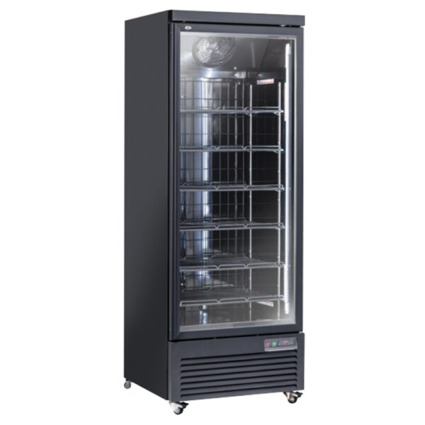 Congelatore verticale con capacità da 560 litri, con corpo in acciaio di colore nero ed una porta in vetro. Equipaggiato con luce LED verticale con interruttore indipendente, porta riscaldata con doppio vetro di sicurezza temperato, sistema di raffreddamento ventilato, 6 ripiani regolabili, serratura, porta autochiudente, 4 ruote per un facile posizionamento e termostato digitale. Dimensioni esterne: L 750 x P 760 x H 2040 mm. Temperatura di esercizio: -22°/-18° C. Temperatura di test: L1 (-18°/-15° C). Colore: nero. Progettato per essere utilizzato in molteplici modi, garantendo sempre una corretta conservazione degli alimenti per una corretta esposizione e apprezzamento dei prodotti all’interno.