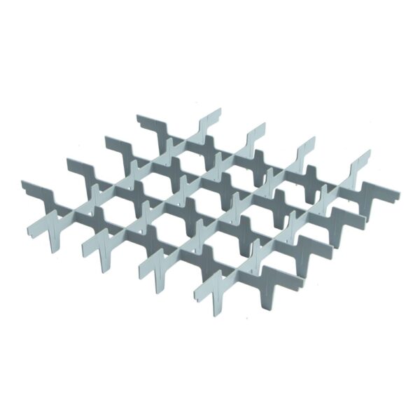 Griglia separatrice per bicchieri per cestello lavatazzine. Dimensioni: 50 x 50 cm. Capacità: 25 bicchieri (5×5) max Ø 89 mm.