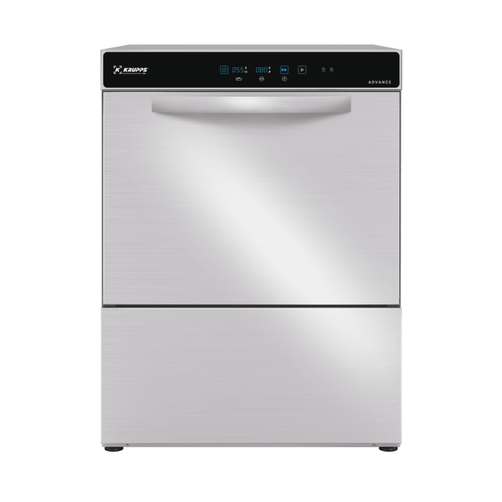 Lavastoviglie professionale sottobanco con cestello 50 x 50 cm, ideale per il lavaggio di bicchieri e fino a 18 piatti per ciclo. Realizzata in acciaio inox AISI 304, garantisce resistenza, igiene e lunga durata. Dotata di pannello digitale Advance (DGT50) con 4 cicli di lavaggio, controllo elettronico di tempi e temperature, funzione Smart Start e sistema Termostop. Produttività fino a 720 piatti/ora, consumo acqua ridotto (2,2 l per ciclo) e dosatore automatico di detergente e brillantante. Dimensioni: 58,5 x 60 x H 81,5 cm.