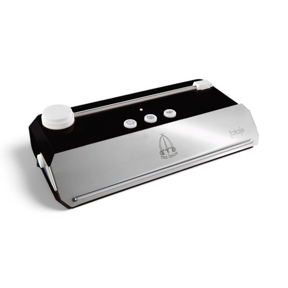 Realizzata con una combinazione di ABS e acciaio inox, questa macchina offre quattro diverse modalità di funzionamento: ciclo automatico, ciclo manuale, ciclo svuotamento vasi e ciclo sigillatura per rotoli. La barra saldante da 33 cm, con larghezza di 3 mm, garantisce sigillature resistenti e affidabili. La sua potente pompa da 200 W permette un’aspirazione di 16 l/min e un valore massimo di vuoto di 800 mbar, che la collocano tra una delle più performanti macchine sottovuoto ad aspirazione esterna. Dimensioni: larghezza 36,5 x profondità 18,5 x altezza 36,5 cm. Peso netto: 3,3 kg. Aspirazione: 16 lt/min. Potenza assorbita: 200 W. Depressione massima: 800 mbar. Voltaggio e frequenza: 220-240 V / 50-60 Hz. In dotazione: 2 valvole, 1 tappo bottiglie e 10 buste (20 x 30 cm). Nota bene: Non aspirare liquidi direttamente e fare attenzione nel caso si volesse mettere sottovuoto delle sostanze liquide.