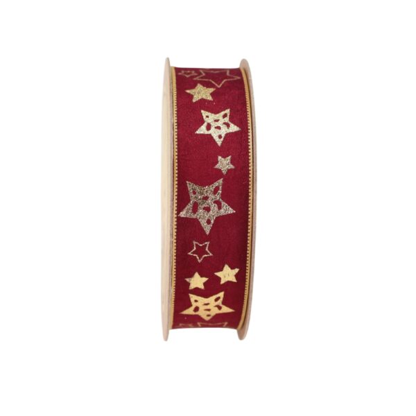 Nastro in 100% poliestere con stelle dorate. Dimensioni: 25 mm x 15 mt.