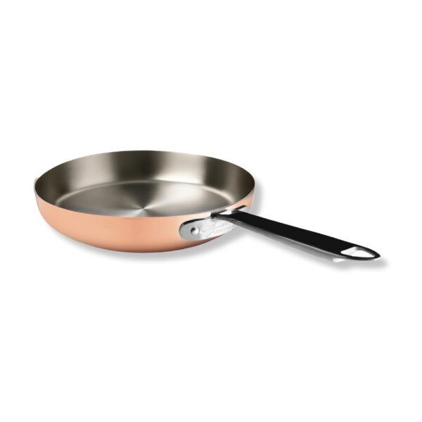Padella dallo spessore di 2,5 mm. 1 manico in acciaio inox. Adatta per i piani cottura a induzione, gas, elettrici e radianti. Materiale: – Composizione 4 strati: acciaio inox, alluminio, acciaio ferritico e rame (Copper 4).