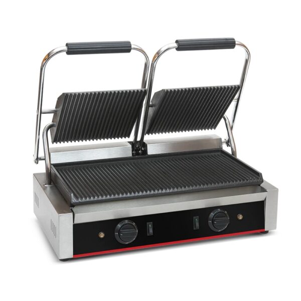 Piastra Doppia In Ghisa Per Panini Rigata Sotto E Sopra