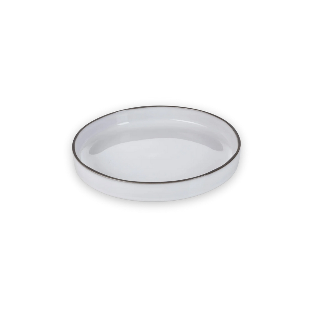 Con il suo diametro di 23 cm, questo piatto gourmet della linea Caractère è perfetto per servire piatti in salsa, dessert generosi, insalate o ricette creative. La sua forma cava e irregolare, ispirata al gesto del modellatore, offre una presentazione organica ed elegante. Il bordo nero smaltato a mano, che rivela la pasta nera grezza, crea un sottile contrasto rispetto al colore del piatto.