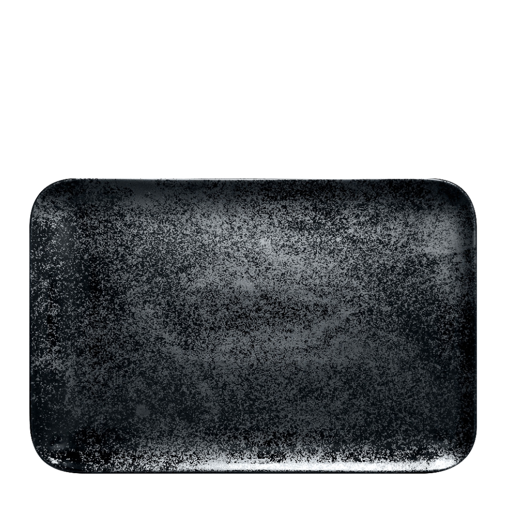 Piatto rettangolare. Materiale: porcellana. Colore: smaltato nero e antracite. Adatto al microonde. Lavabile in lavastoviglie.