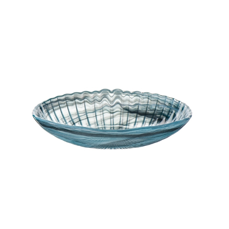 Piatto Testa Vetro Alabastro Bianco, Nero E Verde Petrolio