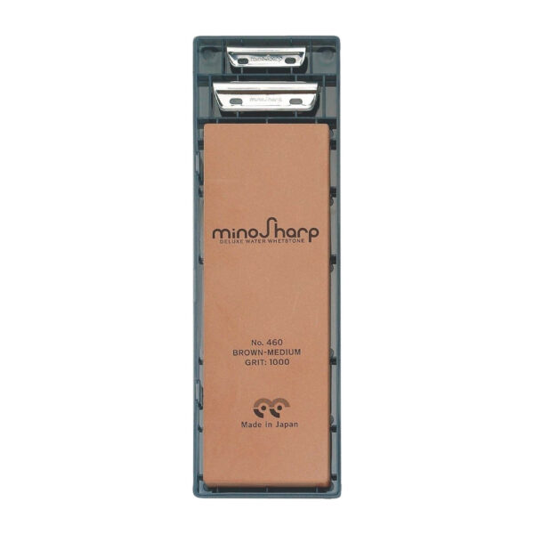 Pietra tradizionale ad acqua con 2 guide, grana media 1000. La pietra a grana media è la più versatile e la più utilizzata per le operazioni di affilatura.