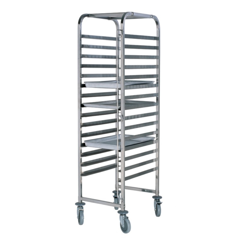 Dimensioni teglie: 60 x 40 cm. Altezza carrello: 170 cm. Capacità: kg 15 per piano.