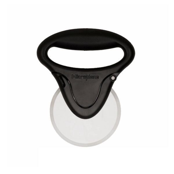 La rotella taglia-pizza Microplane con la lama in acciaio inossidabile e il moderno manico nero taglia in un lampo pizza, rustici e quiche grazie alla rinomata affilatura Microplane. È costruita in modo tale da permettere di tagliare un impasto croccante trasmettendo la forza della mano in modo uniforme, inoltre grazie alla semplice apertura del gancio è possibile smontare facilmente la lama così da poter pulire la rotella a fondo e velocemente.