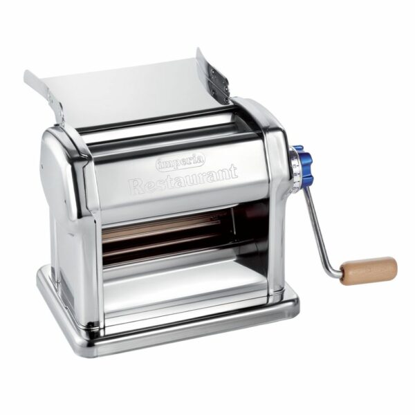 Il design garantisce facilità d’uso ed efficienza, rendendola la scelta ideale sia per gli appassionati di cucina casalinga italiana autentica che per i professionisti culinari in cerca di attrezzature affidabili. I rulli in acciaio inox vengono mossi da una leva lunga che garantisce un movimento regolare e demoltiplicato riducendo al minimo lo sforzo di lavorazione. Costruzione robusta che garantisce longevità e prestazioni consistenti. Dimensioni: 220 x 325 x 275 cm. Campo di regolaz. rulli (max.apertura): 0 ÷ 5 mm. Peso: 9,630 kg. Ingranaggi in acciaio temperato ruotanti su perni rettificati. Boccole autolubrificanti. Pomello regolatore con indicatore numerato per 10 diversi spessori di sfoglia.