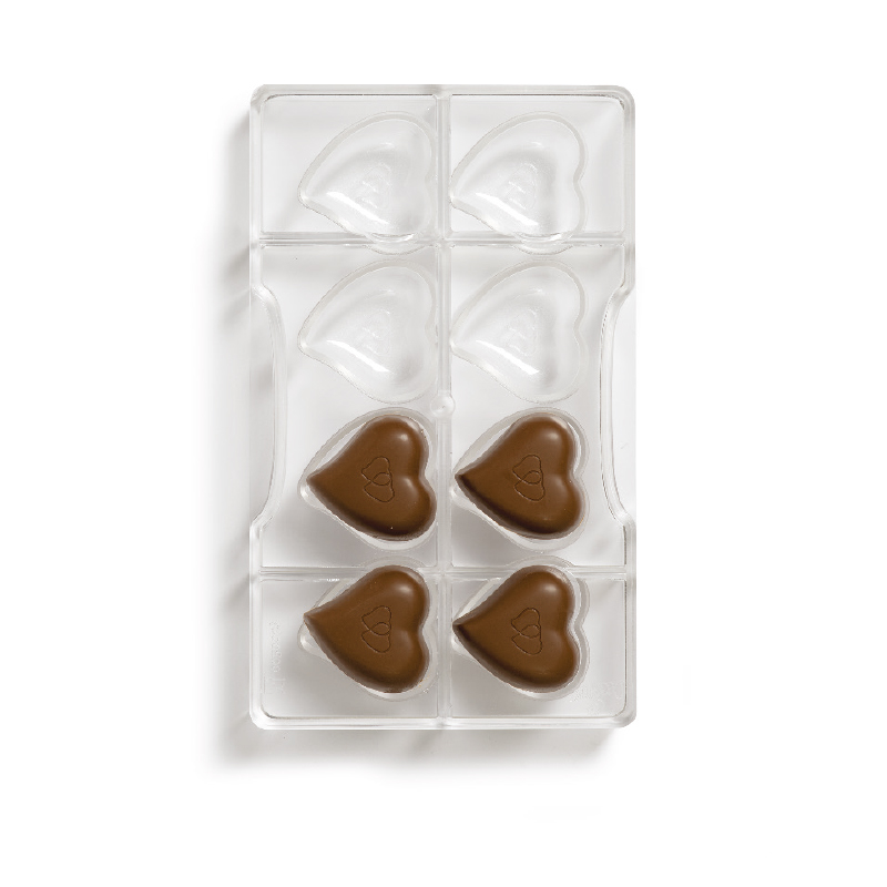 Stampi professionali, realizzati in policarbonato, materiale che consente di ottenere cioccolatini lucidi e perfetti. Modelli brevettati per realizzare cioccolatini dalle forme originali ed una linea tridimensionale dalle forme esclusive da unire in un perfetto incastro per ottenere cioccolatini in 3D. Cavità : 8. Peso cioccolato per cavità : 14 gr. Dimensioni: 39,7 x 39,2 x H 10 mm. Dimensioni stampo: 200 x 120 x H 22 mm.