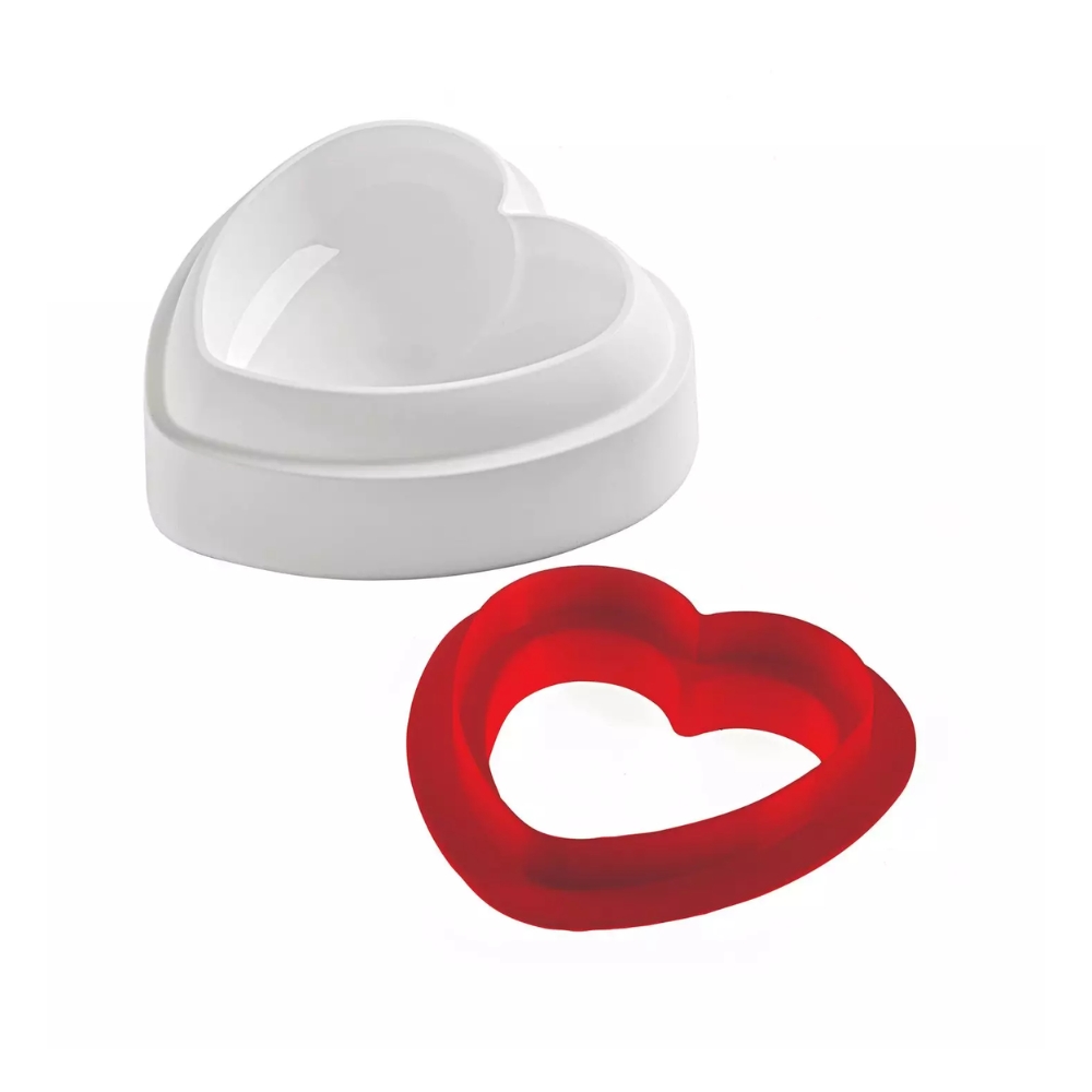 Stampo in silicone per realizzare splendide torte a forma di cuore con tagliapasta in ABS. Lo stampo è dotato di una speciale e innovativa bordatura sulla parte superiore che conferisce alle preparazioni una particolare forma arrontondata alla base. Si presta a preparazioni dolci e salate, garantendo una resistenza alla temperatura che varia da -60°C a +230°C. Dimensioni: 142 x 137 x H 52 mm. Volume: 600 ml. BPA Free. PFAS Free.
