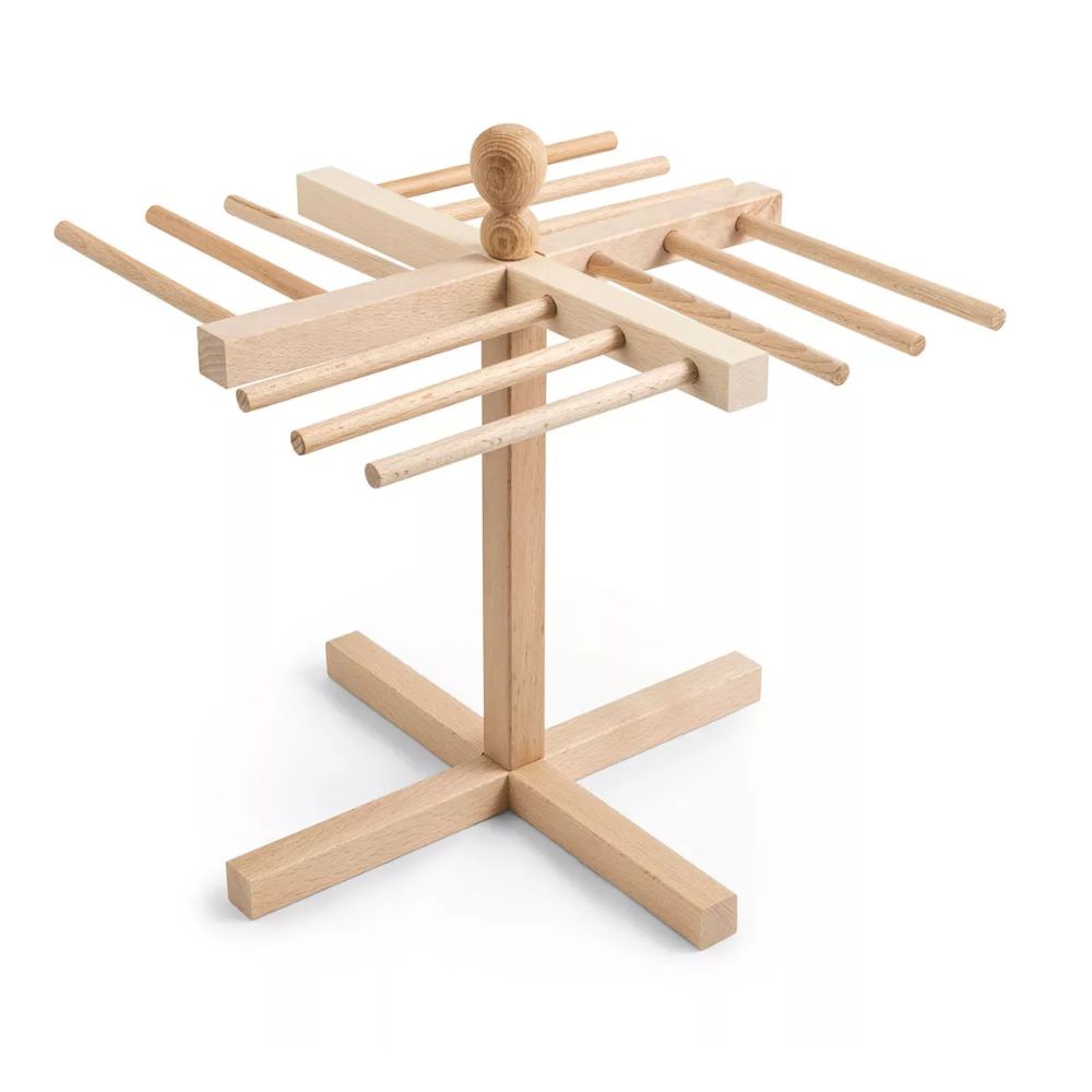 Lo stendipasta è lo strumento perfetto per asciugare fino a 1,5 kg di pasta fresca, in modo che si mantenga integra ed elastica anche in cottura. Le bacchette estraibili servono a raccogliere la pasta in fase di taglio e sono inseribili nel telaio dello stendipasta in modo semplice e veloce. Costruito in legno di faggio, dopo l’utilizzo può essere smontato e riposto nella confezione originale salvaspazio.