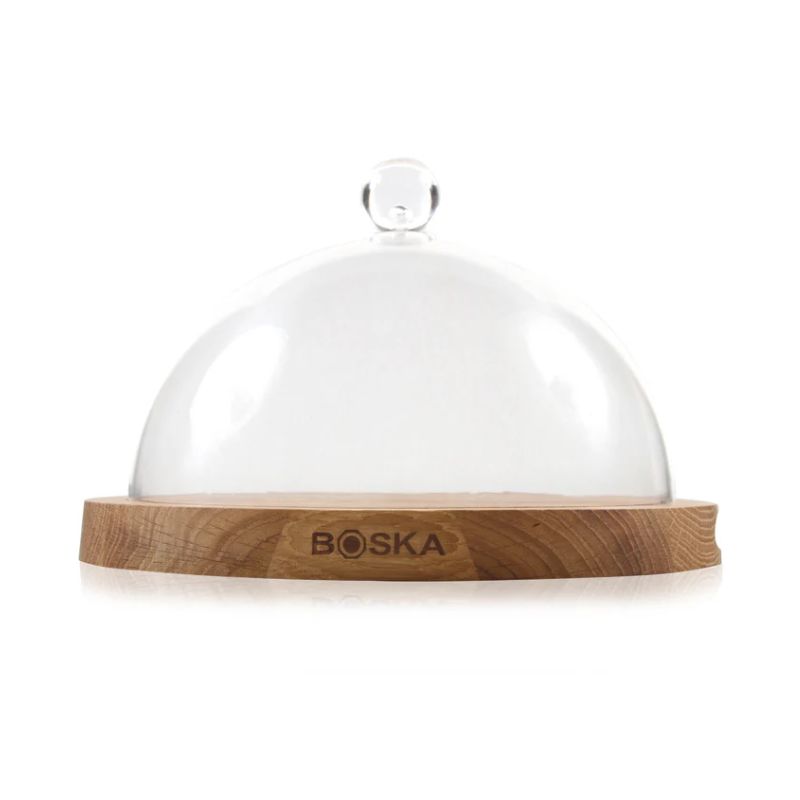 Tagliere Quercia Tondo Con Campana In Vetro Per Formaggi