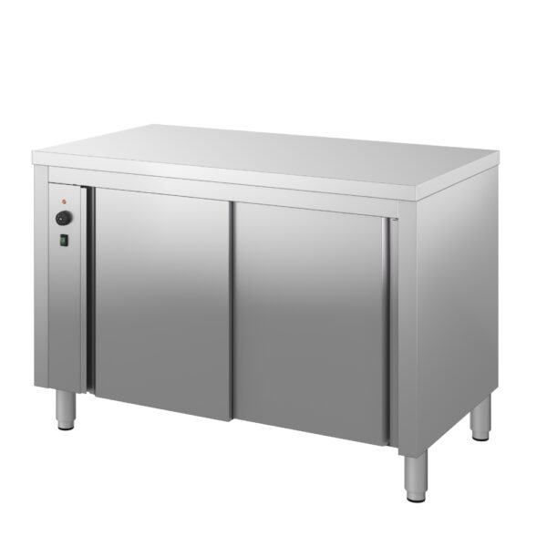 Tavolo Inox Armadiato Riscaldato Con Ante Scorrevoli 200 x 70 x H 85 cm