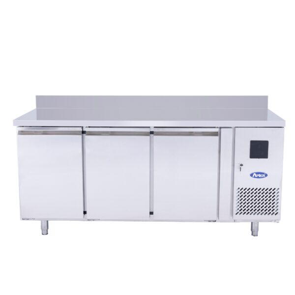 Tavolo frigorifero 700 TN 3 porte GN1/1 con alzatina. Tropicalizzato. Con alzatina e top in acciaio AISI 304. Dimensioni: 179,5 x 70 x H 85 cm. Capacità lorda: 420 lt. Temperatura: -2°C/+8°C.