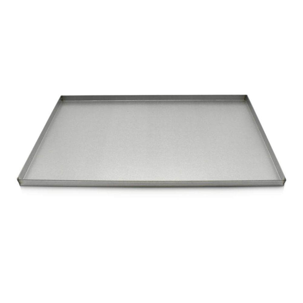 Dimensioni: 60 x 40 cm. Con bordi dritti saldati e rivoltati. In lamiera alluminata sp. 8/10.