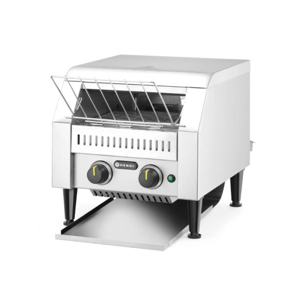 Il tostapane a nastro doppio Hendi è una soluzione professionale pensata per bar, hotel, mense e strutture di ristorazione che richiedono una tostatura continua, uniforme e ad alta capacità . Grazie al suo nastro trasportatore doppio, permette di lavorare due file di fette di pane contemporaneamente, migliorando notevolmente l’efficienza del servizio. Con una potenza di 2240 W e alimentazione a 230 V, questo modello è in grado di garantire prestazioni elevate anche durante un uso intensivo, ideale per servire toast, panini e prodotti da forno in serie senza interruzioni. I due elementi riscaldanti separati assicurano una tostatura omogenea su ciascun lato del pane, mentre il tempo di tostatura regolabile fino a 3 minuti permette di ottenere il livello di doratura desiderato con precisione. La costruzione in acciaio inox resistente non solo conferisce robustezza e durabilità , ma facilita anche le operazioni di pulizia e manutenzione quotidiana. Il design compatto con teglie frontali e posteriori incluse ne agevola l’integrazione in postazioni di lavoro professionali senza occupare spazio eccessivo.