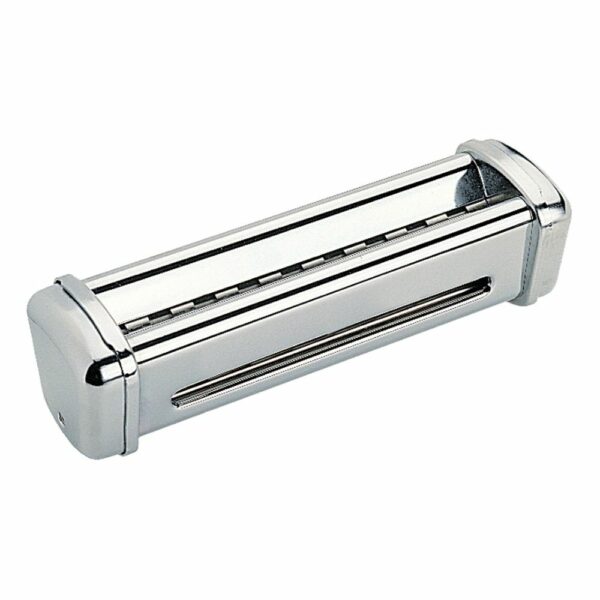 Accessorio da taglio adattabile a tutte le macchine della gamma Imperia Pasta Restaurant. Realizzato in acciaio inossidabile di alta qualità, questo accessorio è robusto e facile da pulire. Progettato per tagliare la pasta in strisce larghe 12 mm, è perfetto per creare Lasagnette. Questa forma di pasta unica è ottima con sughi corposi.