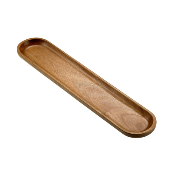 Vassoio ovale in legno di Acacia, idoneo al contatto alimentare. Lavabile a mano. Dimensioni: 60 x 12 x H 3 cm.